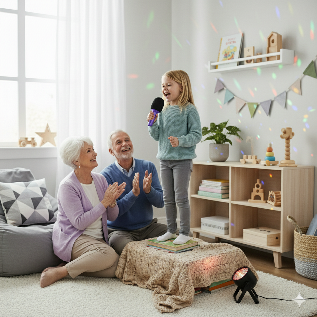 Dieses kabellose Mikrofon im tollen Glitzer-Look, ist vollgepackt mit lustigen Funktionen, darunter magische Soundeffekte, einstellbarer Hall und originelle Klangunterdrückung.