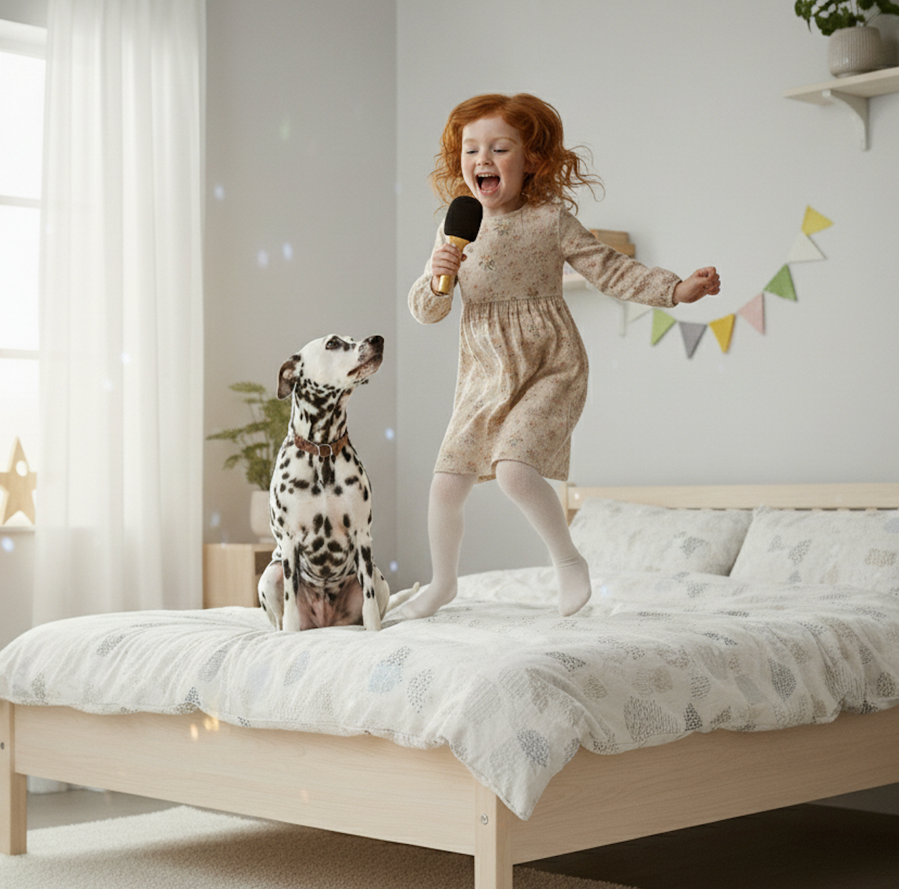 Dieses kabellose Mikrofon im tollen Glitzer-Look, ist vollgepackt mit lustigen Funktionen, darunter magische Soundeffekte, einstellbarer Hall und originelle Klangunterdrückung.